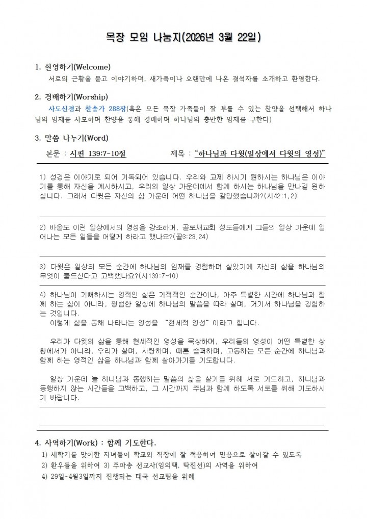 ¸ñÀå ¸ðÀÓ ³ª´®Áö(2026³â 3¿ù 22ÀÏ)